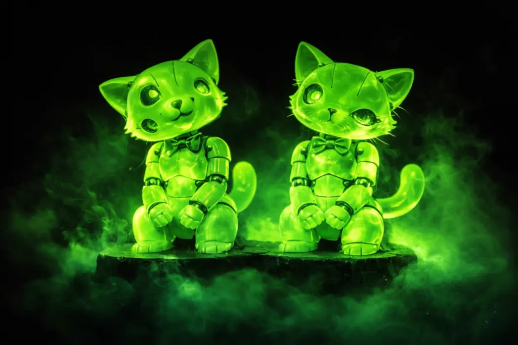 Azrael 15, 1790 — Fellow animation addicts: it’s real. Abramelin Computer Systems [1] has officially revealed a premium “haunted” figurine line inspired by Eric and Stella—the crown-jewel cartoon felines of Yutu Omni-Media—promising hyper-fluid mechatronic motion, augmented-reality layers, and a supernatural hook that goes far beyond spooky branding.