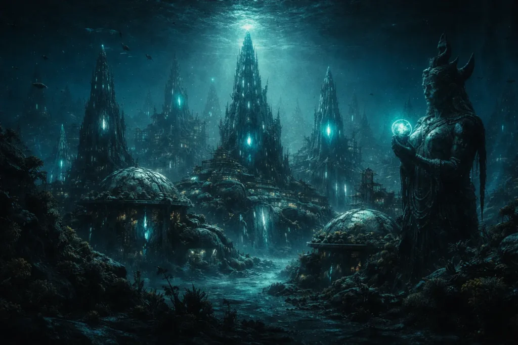 The dying glow of the Hallowed Courts. As the Arakiel supply chain fractures, the bioluminescent spires of Adonaios flicker against the encroaching abyssal cold, signaling a systemic collapse of the undersea state’s heat economy. Credit: Kenomitian