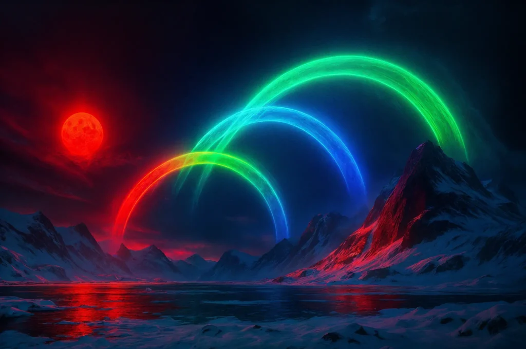 The celestial spectacle was unlike any in recent memory. Following a period of unprecedented geomagnetic activity, the arcs, which typically appear with a subtle shimmer, suddenly solidified and brightened to a vivid intensity. Their three primary colors—a dominant red, an ethereal green, and a deep blue/purple—danced and pulsed against the dark polar skies. The display lasted for over eight hours, a duration considered by Thulean scholars to be exceptionally long and a clear indicator of a profound cosmic convergence. The event was particularly pronounced over a coastal city in Nóatún, where the massive structures were visible to the naked eye for hundreds of leagues across the freezing waters. The aetheric energy they radiated was so potent it could be felt as a palpable warmth on the skin of those who ventured out to watch.