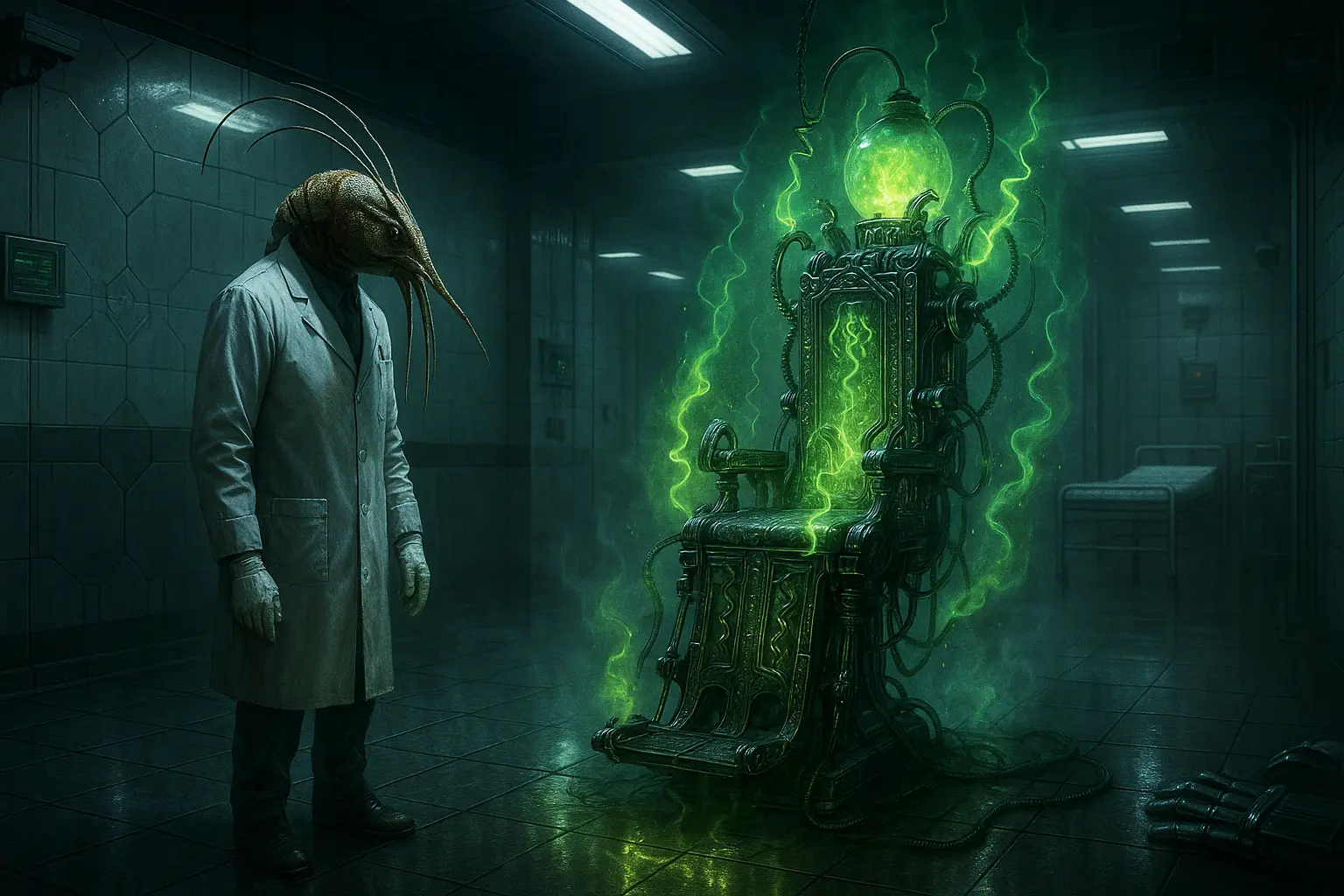 Orgone Refinement: In clinics across the Harmonium, ‘extractors’ catalyze the pain of recollection rehearsals into Aether, which feeds the Vretil System (Credit: Kenomitian)