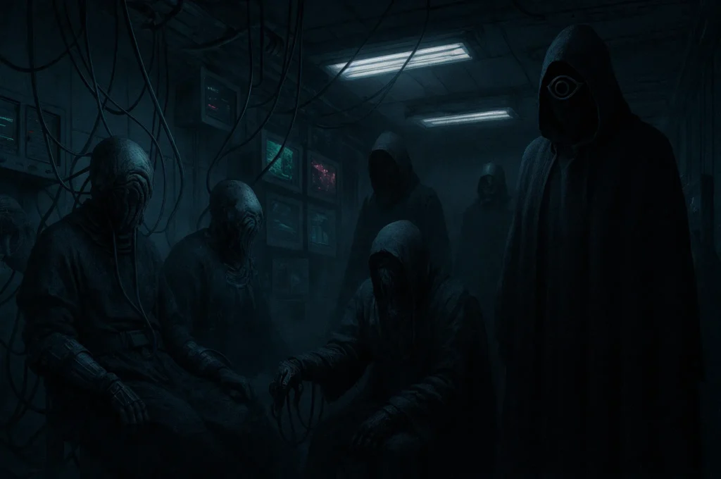 Members of the Nakhielim of the Tree of Eyes, the Socialist State’s notorious secret police, conducting surveillance and operations from a dimly lit command center (Credit: Kenomitian)