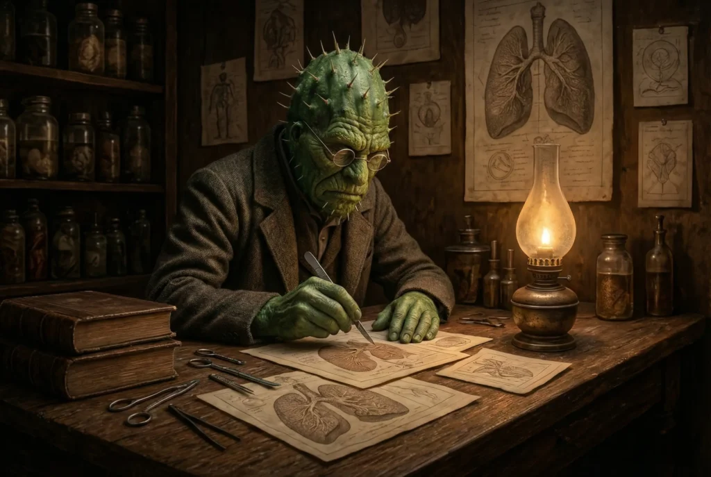 Dr. Mallory’s grim dissection: The precise anatomy of terror, revealed not by a novice, but by a professional hand (Credit: Kenomitian)