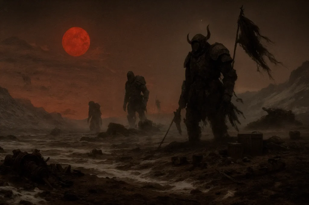 Amidst the ongoing conflict, state media from Zalgo and Nous accuse a hidden faction of the Abbā də Rabbūṯā of invoking the Deviless Belial. Their war, they claim, is not for land, but for the corruption of the soul itself (Credit: Kenomitian)