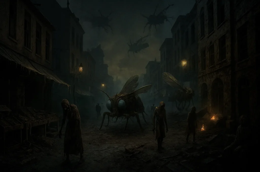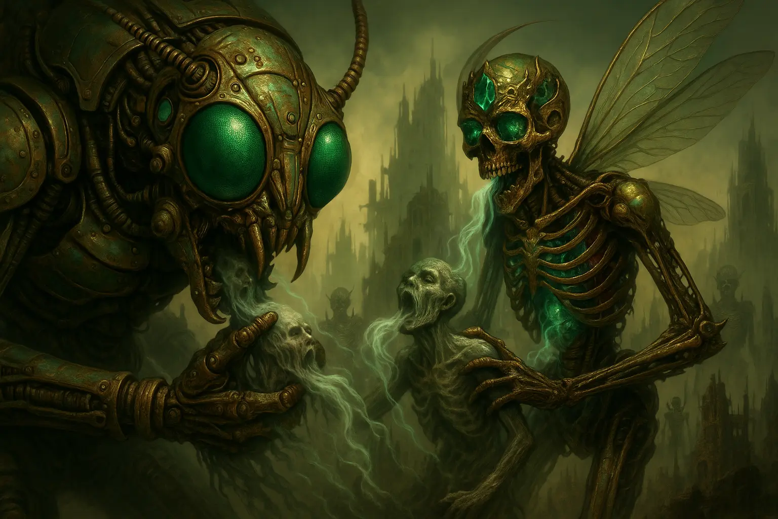 ZION, KYRIOS – Sandalphon 4, 1790 – For too long, the so-called “authorities” of the Kenomitian Sphere have dismissed the chilling whispers, the fragmented texts, and the dire warnings of those who truly see beyond the mundane. They call us “conspiracy theorists,” “madmen,” “disreputable sources.” But what are they hiding about the escalating terror of the Flesh-Eating Locusts now plaguing the Kyrian Kritarchy [1]?! A cosmic judgment is unfolding before our very eyes, foretold by the forgotten seers and whispered through millennia, culminating in a grotesque manifestation across Kenoma.