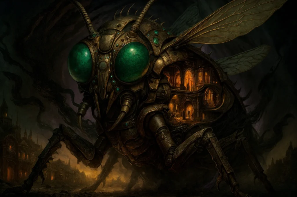 More than mere bugs, the demonic Mazzikin consume not just flesh but souls, draining the very Orgone from life. These towering avatars are the true harbingers of oblivion (Credit: Kenomitian)